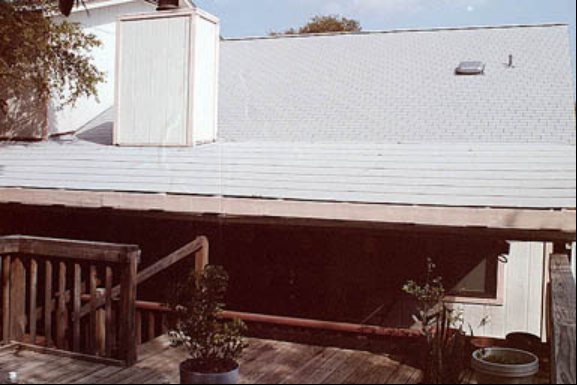 This is taken in the back yard on the deck, looking at the roof. Compare to this shot...